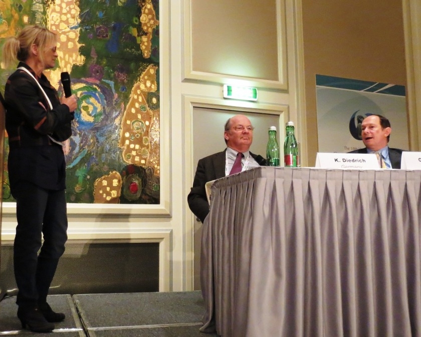 פרופ' וונטוליני מארה"ב ופרופ' דיטריך מגרמניה מציגים שאלות לעו"ד אירית רוזנבלום בכנס COGI בוינה