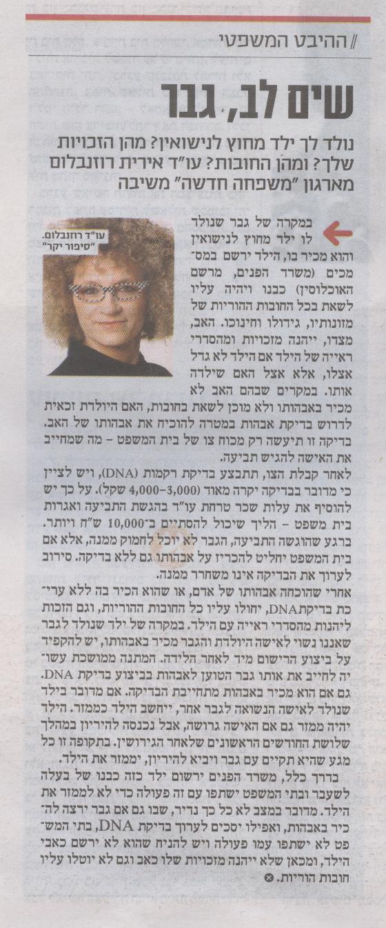 האזינו לראיון רדיו על מקרה של גניבת זרע, בהשתתפות עו"ד אירית רוזנבלום