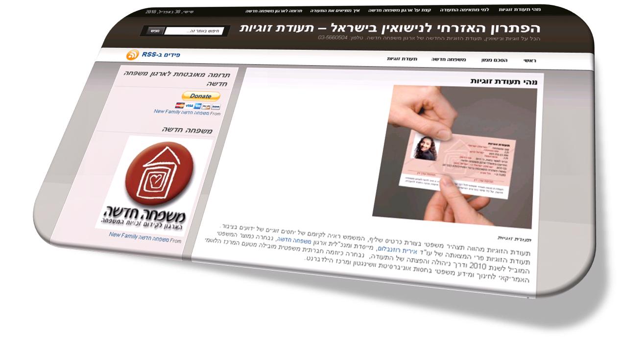 כל התכנים באתר זה מוגנים תחת חוק זכויות יוצרים. "ארגון משפחה חדשה" ו"צוואה ביולוגית" הינם סימן מסחר רשום. אין להעתיק /להשתמש בתכני האתר ללא אישור מפורש מארגון משפחה חדשה.