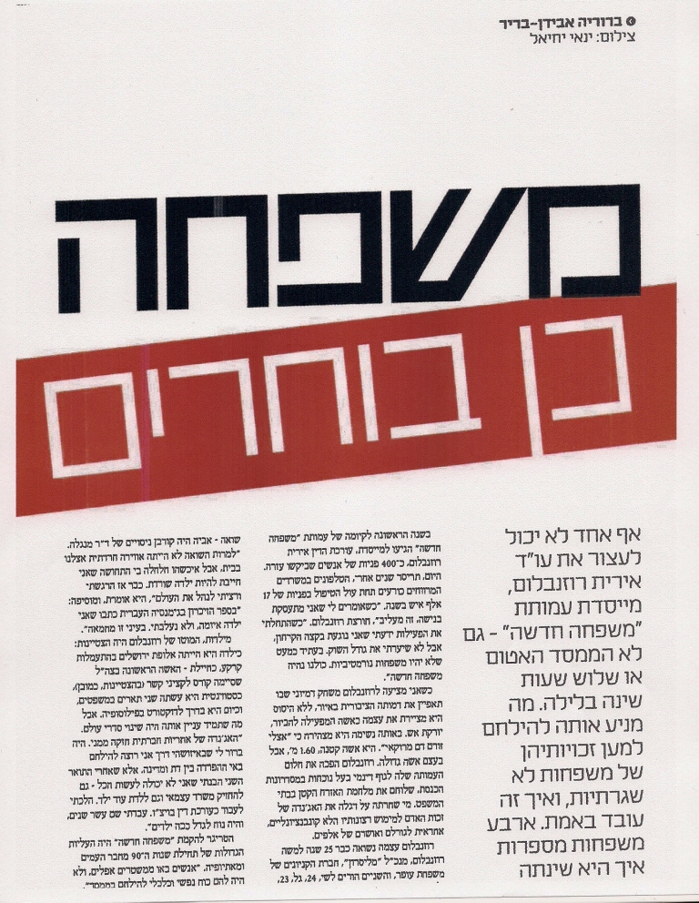 הראיון המלא עם עו"ד אירית רוזנבלום על המשפחה החדשה מתפרסם החודש במגזין "את"