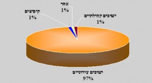 92% בישובים עירוניים והיתר בקיבוצים, מושבים, ישובים קהילתיים ואחרים.