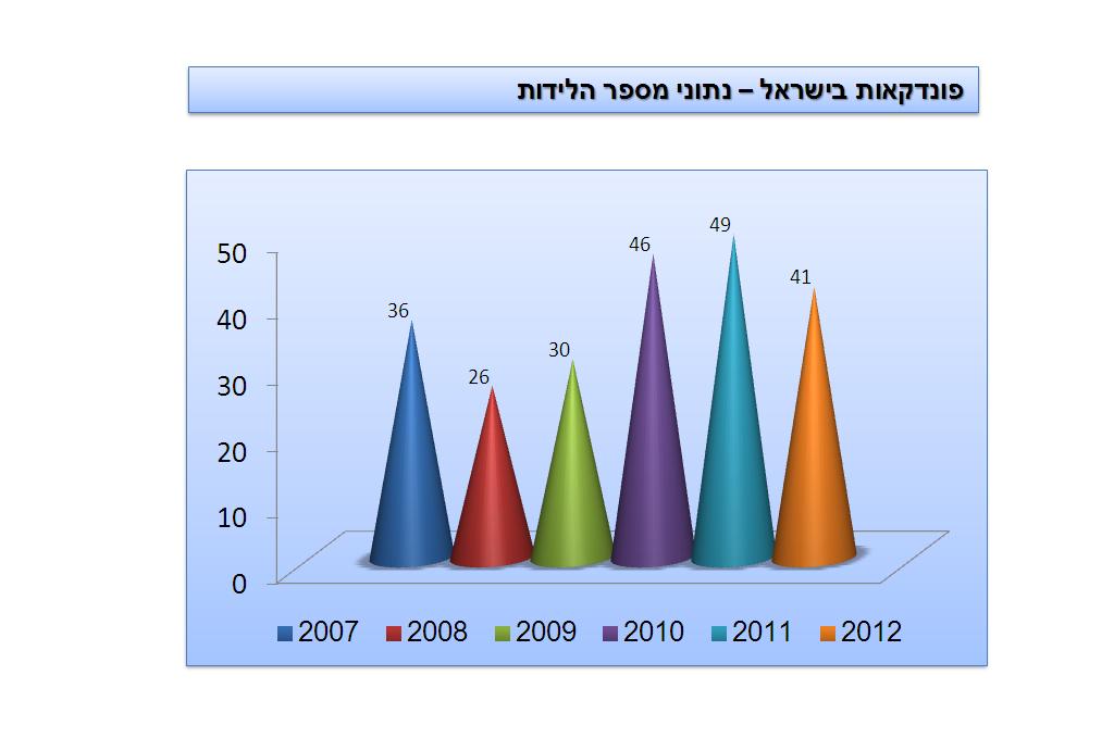 בשנים האחרונות מורגשת מגמה ברורה של עלייה במספר הליכי הפונדקאות של ישראלים בארץ ובחו”ל. אולם, בדיקת “הארץ” מגלה כי בשנה שעברה נבלמה העלייה במספר הליכי הפונדקאות בישראל. ב-2012 היו בישראל 41 לידות כתוצאה מהליכי פונדקאות לעומת 49 ב-2011 – ירידה של 17%. יש לציין כי על פי חוק, גם לא לכל הזוגות ההטרוסקסואליים מאושרת פונדקאות בישראל – אלא רק לאחר חוות דעת רפואית הקובעת כי האם המיועדת אינה מסוגלת להתעבר או לשאת היריון, או שהיריון עלול לגרום סיכון של ממש לבריאותה. במדינות אחרות, המשמשות יעד לישראלים, מגבלה זו אינה קיימת.