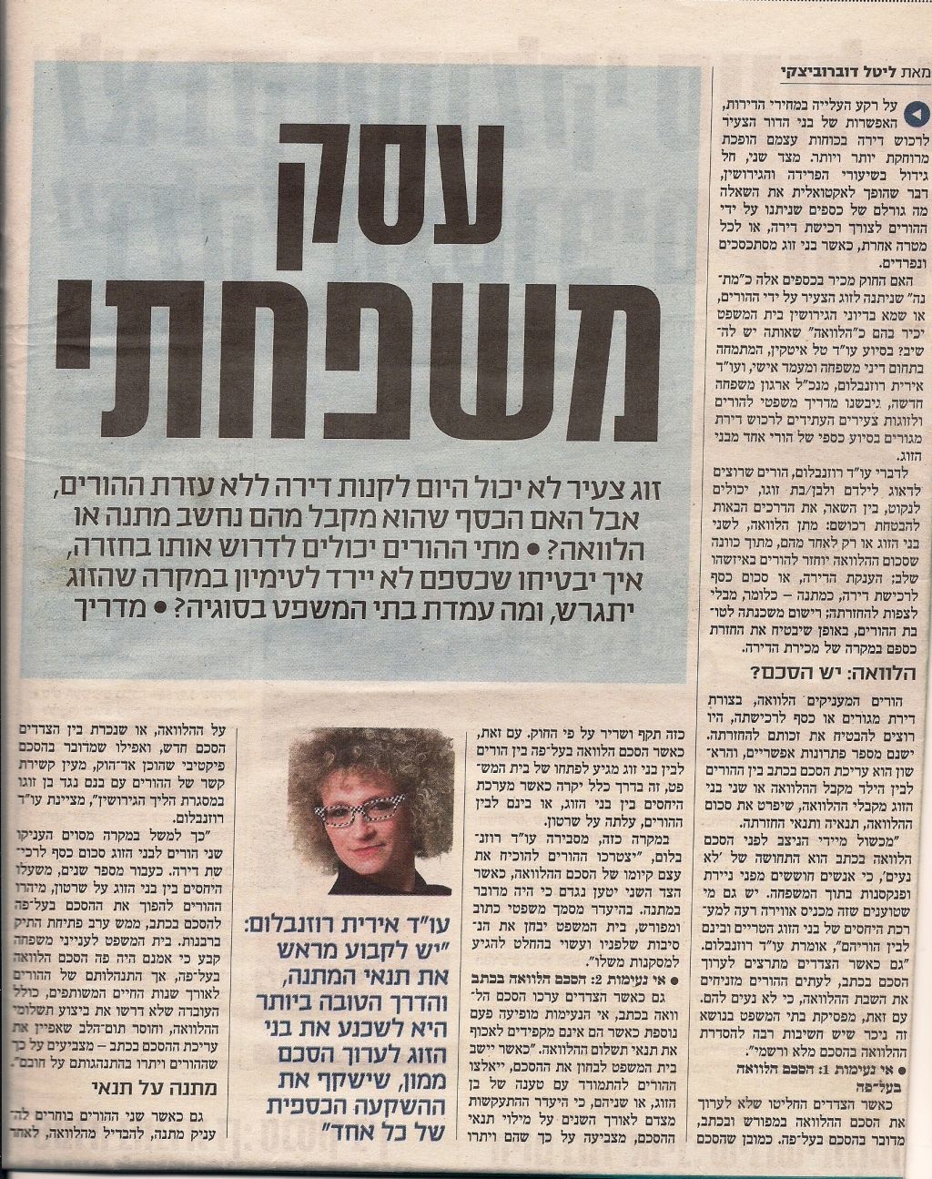 אנחנו ממליצים בחום שלא להסתמך על דוגמאות שמסתובבות ברשת. למרות שנדמה לנו שחוזה הוא חוזה, כל משפחה וכל הרכב של הסכם והנסיבות מאחוריו מאוד שונים זה מה זה. אצלינו אין הסכם אחד שדומה למשנהו, והסתמכות על פורמט קבוע עלולה להוביל להסכם לא טוב.