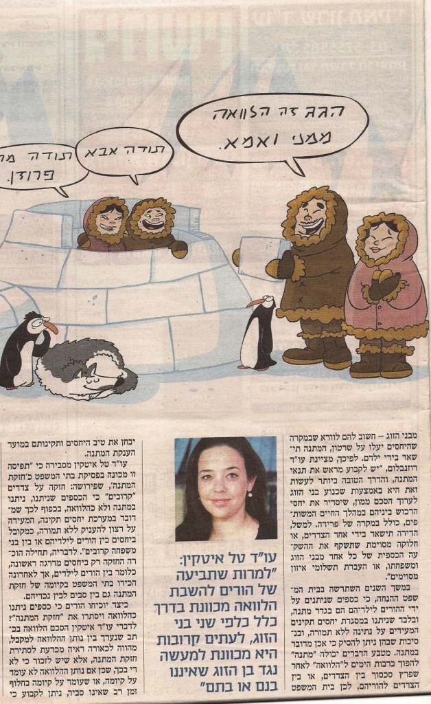 ב. מתנה: הענקת הדירה – או סכום כסף לרכישת דירה – כמתנה, כלומר מבלי לצפות להחזרתה, לילד ולבן/בת זוגו.