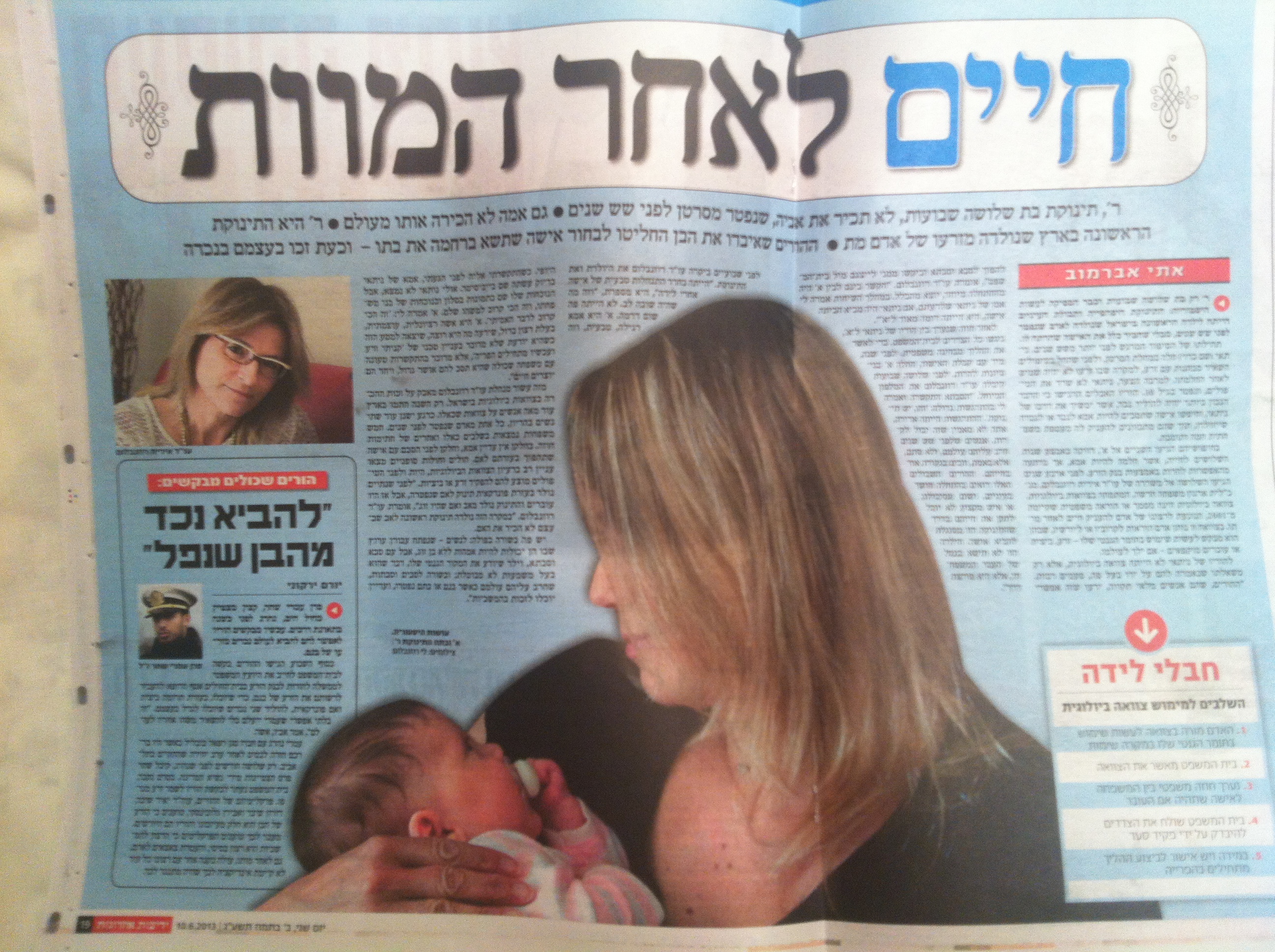 2013 – ר' התינוקת הראשונה שנולדה מצוואתו הביולוגית של אב שנפטר כ 6 שנים לפני  הולדתה.