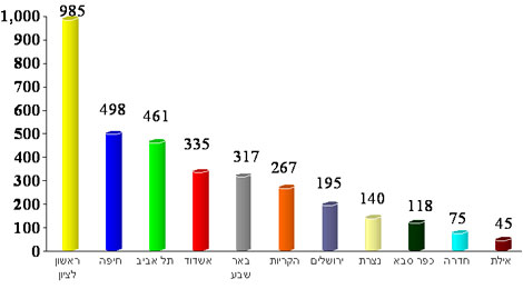 גירושין (התרת נישואין) בין בני זוג מעורבים בקשות שהוגשו לבית המשפט בערים שונות בישראל
