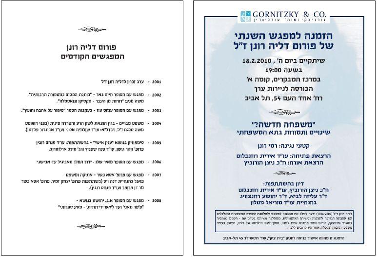 עו"ד אירית רוזנבלום "האם ישראל מכתיבה פוליטית את הדמוגרפיה של המשפחה" ? – הרצאת הפתיחה של פורום דליה רונן – משרד גורניצקי מחר 18.2.2010