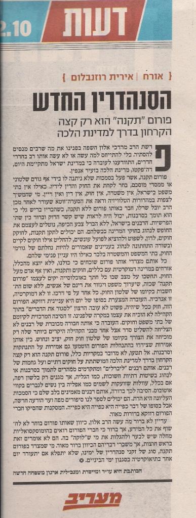 "פרום תקנה" סנהדרין החדשה האמנם ? / אירית רוזנבלום 23.2.10