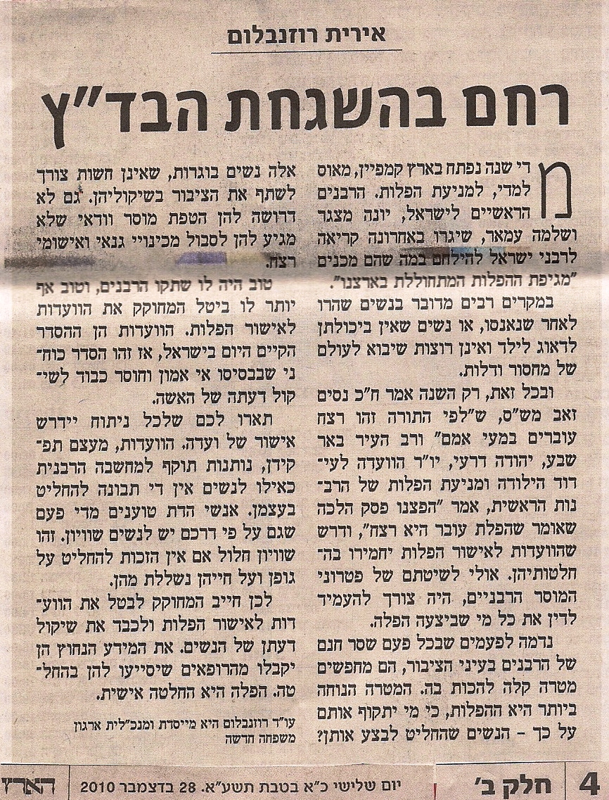 טוב היה לו שתקו הרבנים, וטוב אף יותר לו ביטל המחוקק את הוועדות לאישור הפלות. הוועדות הן ההסדר הקיים היום בישראל, אז זהו הסדר כוחני שבבסיסו אי אמון וחוסר כבוד לשיקול דעתה של האשה.