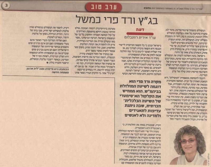 - בג"ץ ורד פרי כמשל /עו"ד אירית רוזנבלום, דעה אישית, פורסם בגלובס 1.9.2011