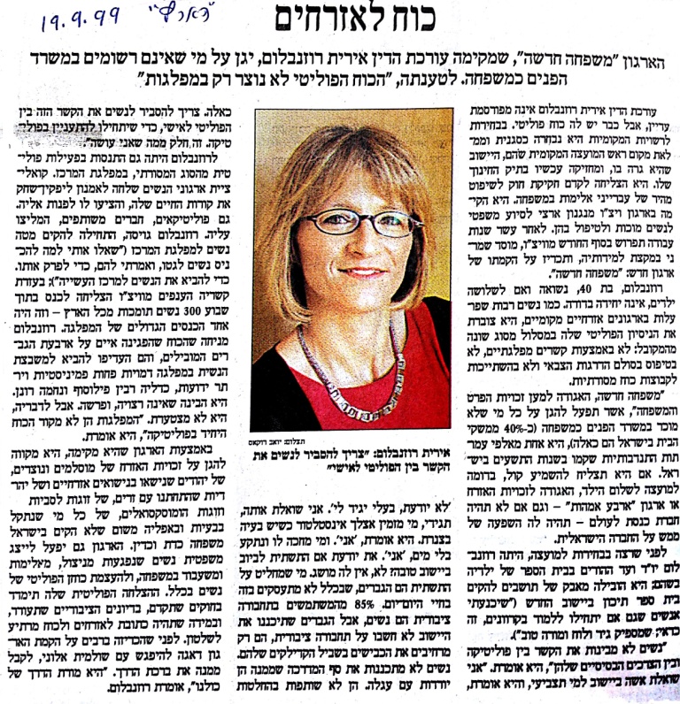 עו"ד אירית רוזנבלום, מייסדת ומנכ"לית משפחה חדשה. צילום : אביגיל עוזי