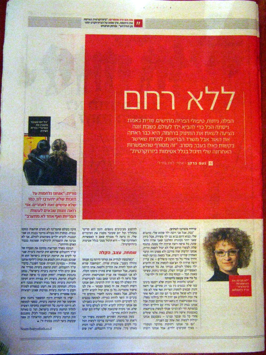 היום התפרסם במוסף 24 שעות של ידיעות אחרונות מאמר ובחלקו ראיון עם עו"ד אירית רוזנבלום. מדובר בעוד מקרה של זוג שרק רוצה להקים משפחה, והממסד ממרר להם את החיים בבירוקרטיה. הפעם מדובר בזוג נשים, שאחת מהן אינה מצליחה לשאת הריון מוצלח. האישה ביקשה להשתמש בנוהל הרפואי של תרומת ביצית על מנת שזוגתה תשא ברחמה עובר השייך לה מבחינה גנטית, נכון לכרגע משרד הבריאות אינו מאשר תרומת ביציות בין בנות הזוג – אנו עוקבים אחרי המקרה ופועלים לפתרון.