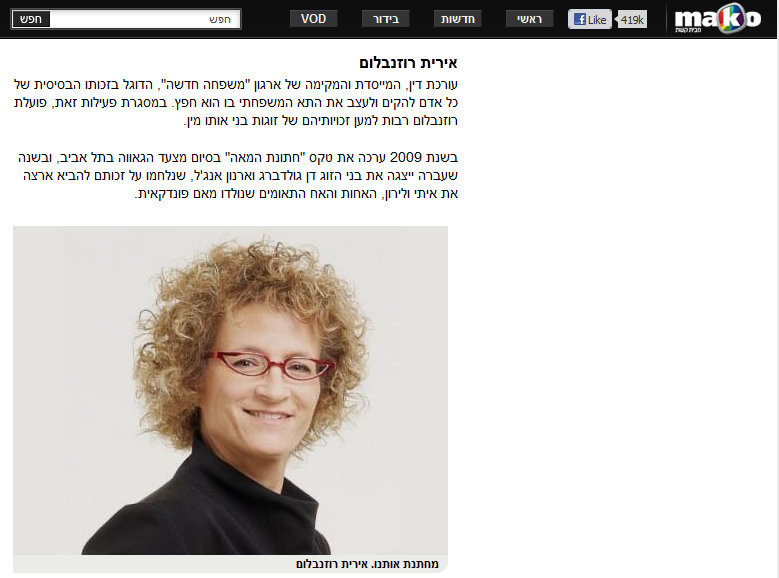 אירית רוזנבלום ברשימת עשרת ידידי הקהילה הגאה של Mako לשנת 2011